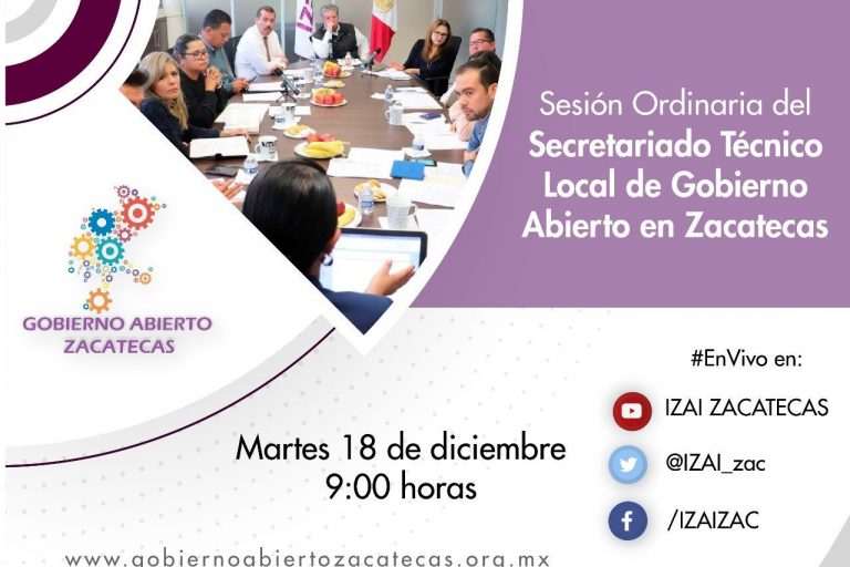 #Entérate Hoy sesión del Secretariado Técnico Local de #GobiernoAbierto en Zacatecas, podrás seguirla #EnVivo a través de nuestras redes sociales. #IZAInforma
